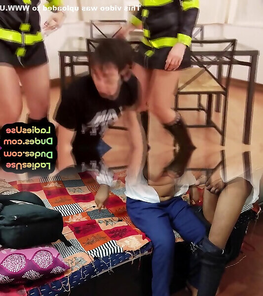 Uniformed Feminas Pound Pathetic Dude In Tight Asshole