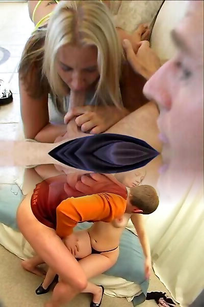 Saucy towheaded deepthroating and pounding 2 huge peckers