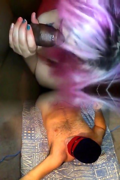She has a dark-hued penis inside her as husband gets bj