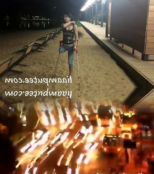 Amputee gal with crutches on the beach