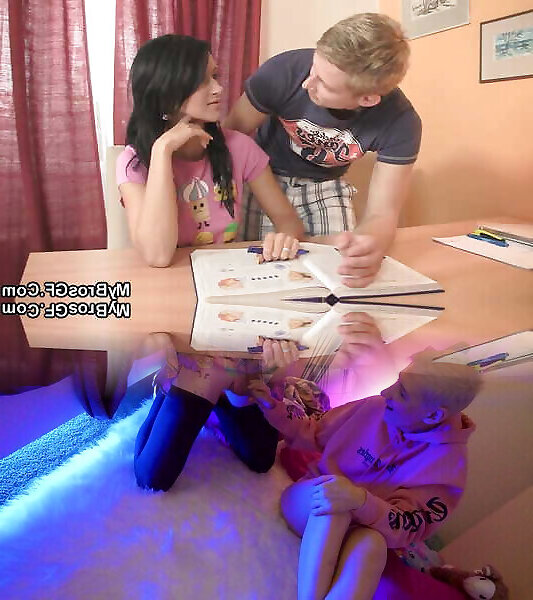 Bro’s teenie girlfriend helps him cum