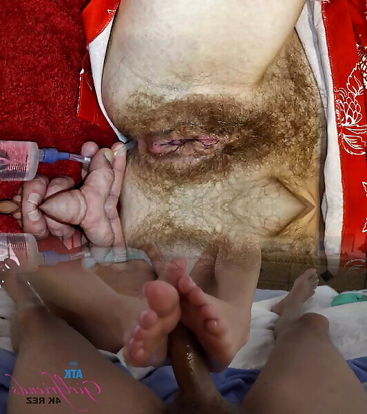 The fluid from a large syringe is poured into my ass. We like such kinky fun