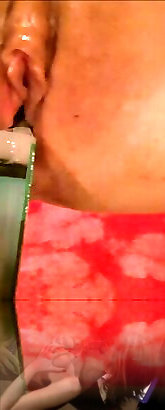 Collecting spunk from my coochie for my fan. White Pearly teenager slit