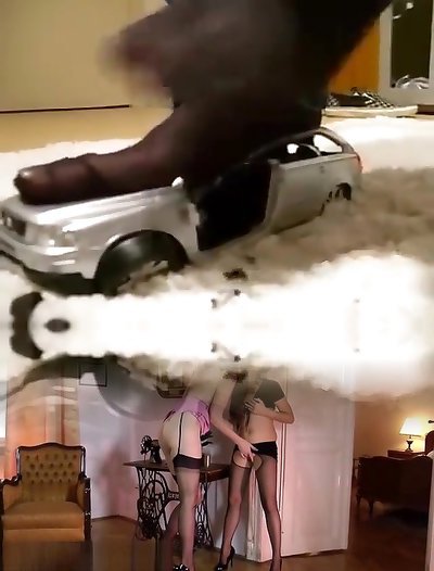 Black Fuck-stick kicking under high-heeled slippers- Ms Foxxy trunk crush