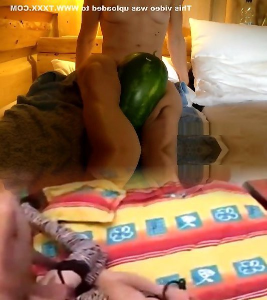 Naked muscle girl kicks watermelon with gams