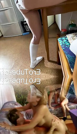 fuck-a-thon on Computer desk with lady homies internal cumshot