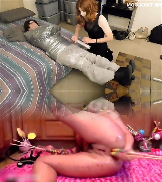 20 yo Hispanic college female dildo duck duck restrain bondage