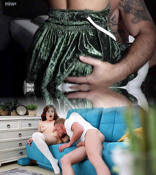 Young tiny tramp banged stiff on sofa