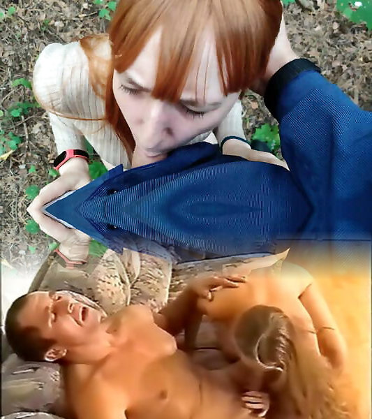 Red hair girl outside pussy fucking in dogging position, anal penetrated