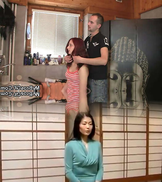 Asian Milf visits huge-chested cuckold wife to help her bathroom