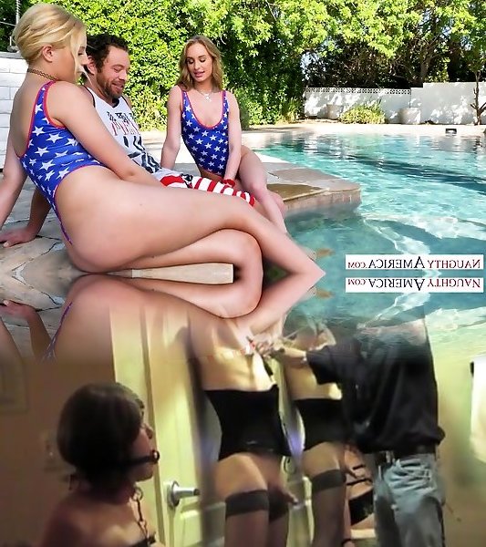 Two jaw ripping off stunners in bathing suit invite man to join them in the pool