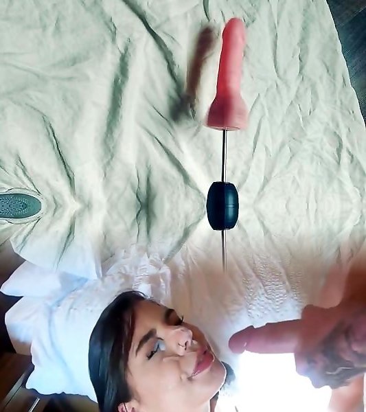 Female poked by fake penis machine, Point Of View webcam
