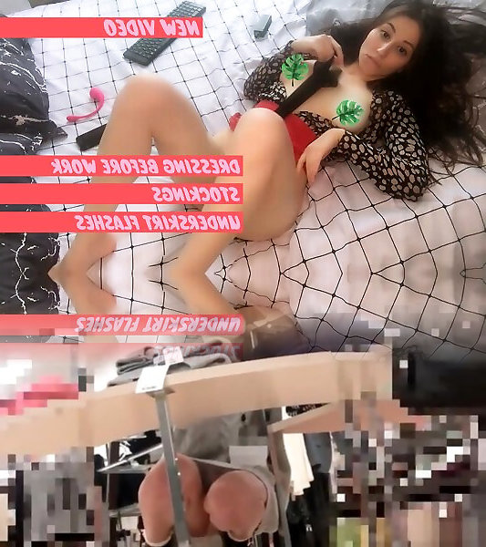 Dressing before work. Stockings taunt