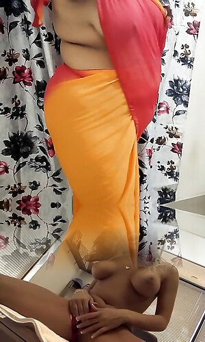 Desi step mom gave new year&039;s welcome by having creampie sex on saree when step son&039;s cock got hard while watching step