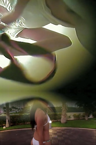 A woman dressed in a miniskirt puts on her swimming suit in a swimmingpool small baby doll fm14 apartment