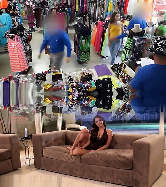 Pretty molten babe models her wool coat and pummel the pawn proprietor