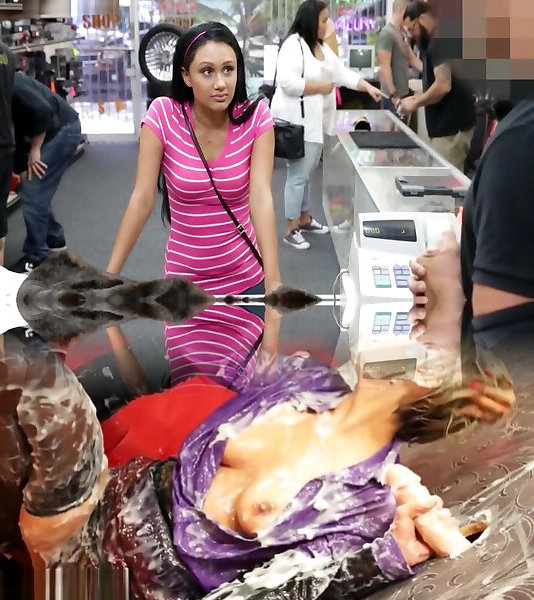 Large baps dark haired babe gets ravaged by pawnshop proprietor