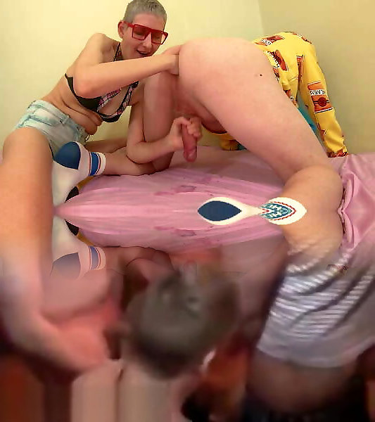 Kiki and Aiden use a huge ebony fucktoy to peg a sissy guy!