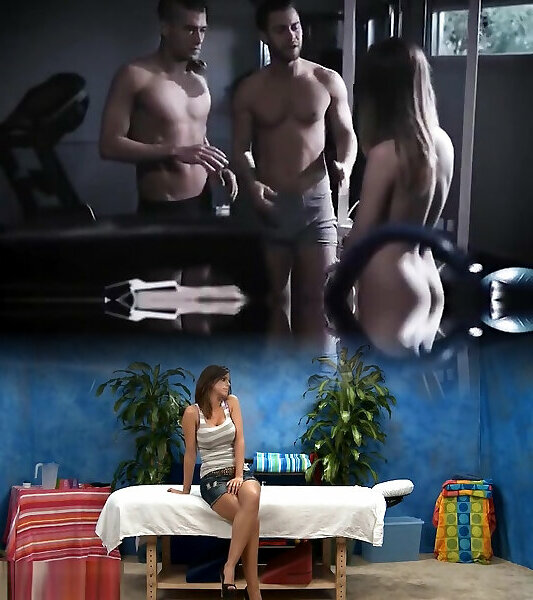 Nerd nubile blackmails two fellows to analyze and Double Penetration her
