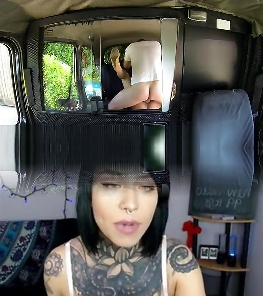 Tatted goth stunner pummels in cab