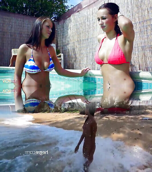 These cute teen lesbians are having fun in the swimming pool and then fuck each other hard