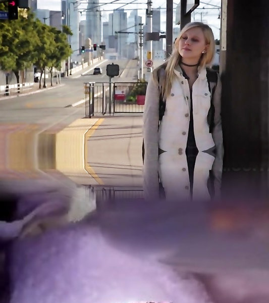 Lesbea Young platinum-blonde teenager scissoring her wet pussy for ejaculation
