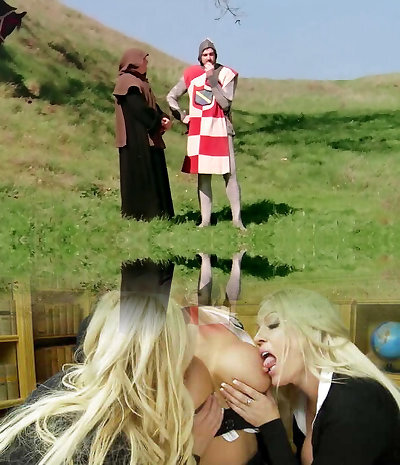 Busty blonde stunner and her hot wicked brunette girlfriend