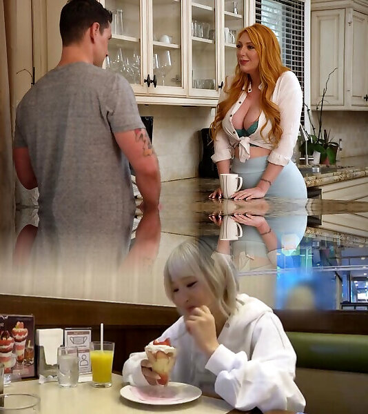 сексуальная рыжеволосая с пышными формами сосет член своего сводного брата и трет его между своих огромных сисек в неподражаемой манере