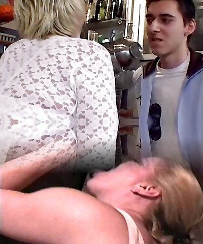 глупая старая немецкая бабуля соблазняет молодого парня-девственника трахнуться
