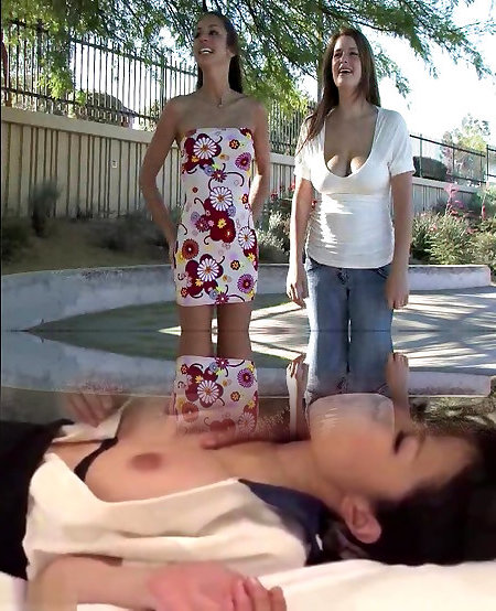 даниэль и ее стройная подружка показывают свои глобусы и вагончики на улице