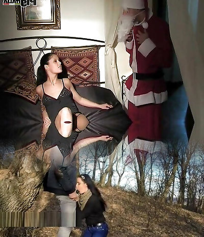 Cute German brunette in stockings gets fucked in both crevasses