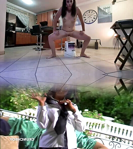 Pigtailed chubby teen doing the 5 minute dildo fuck squat challenge