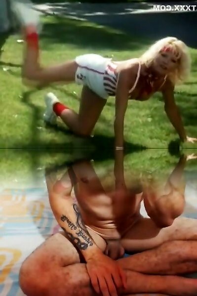 Looking like hot puci platinum-blonde nymph works on 2 strong dark-hued knobs
