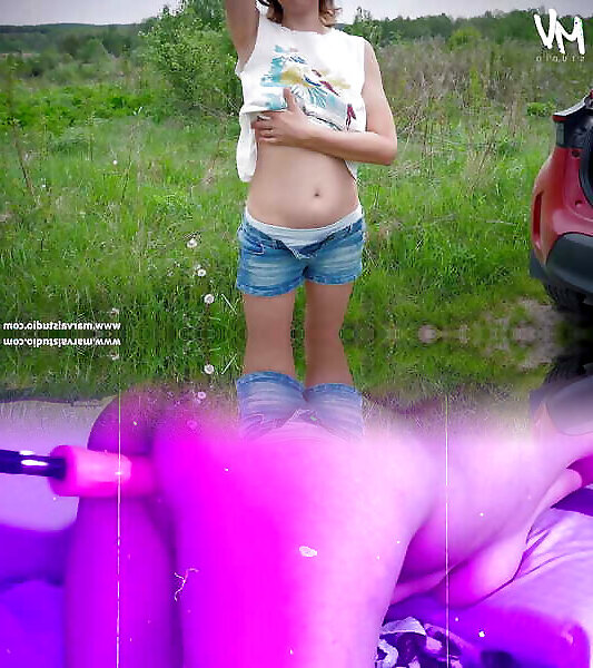 Horny outdoor sex with dildo fuck