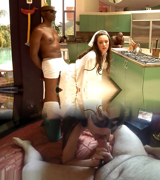 Brave pornstar gets group-fucked with good-sized black beefsticks