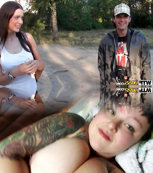 Janet Haven in outside porno movie with a trampy lady and a enormous fellow