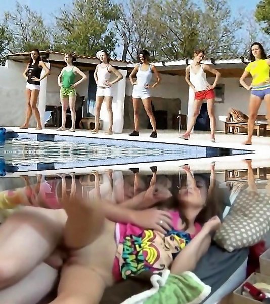 Six nude teens by the pool from Russia