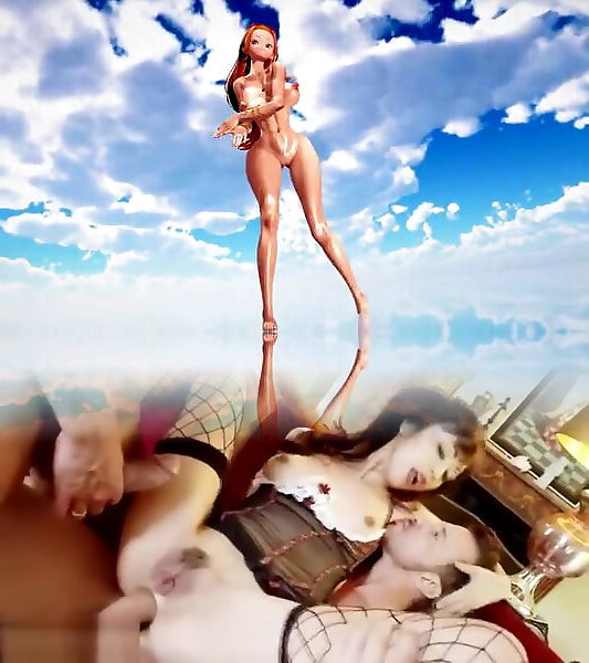 Brown-haired sweetie sucking and jerking rock-hard cumbot before orgy
