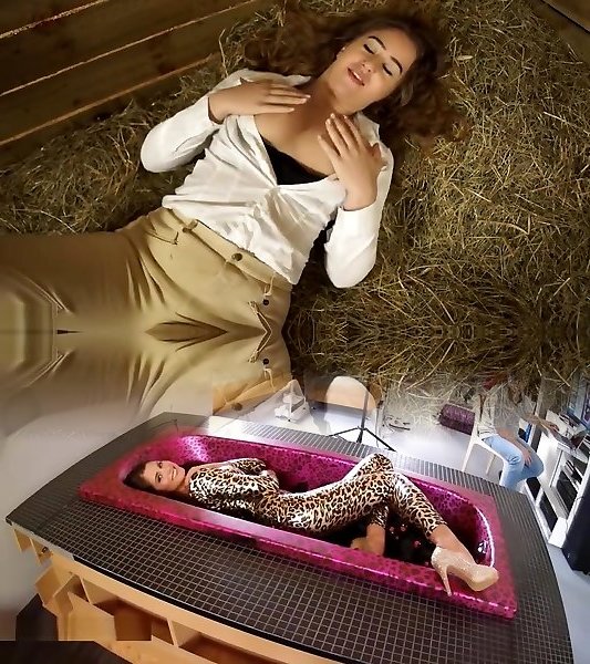 Katy gropes hefty milk cans, inhales puffies and massages vulva