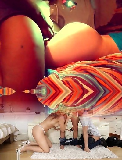 Brooke Biggs and Mackenzee Pierce penetrate rock hard by one trunk