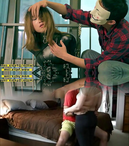 Fejira assfuck group, Fetish marionette nymph dressed in leather catsuit