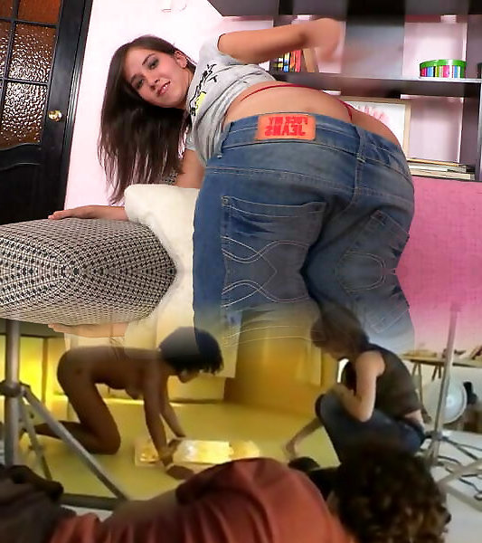 Phat Red-haired in Tight Jeans Ripped in CFNM Rough Humping