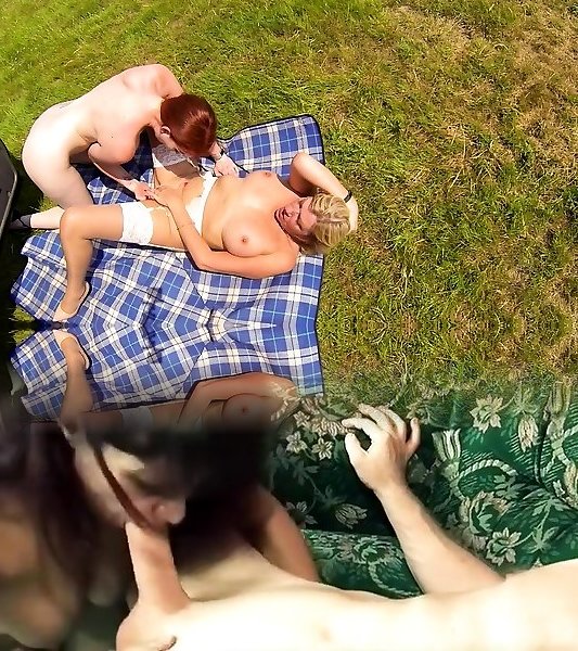 Gal Faux Cab Platinum-blonde cougar spunks on wonderful redheads tongue