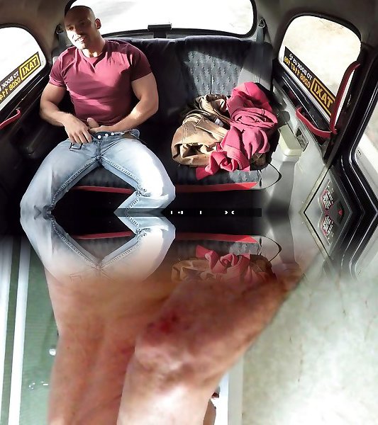 Fellow stroking in girl faux cab