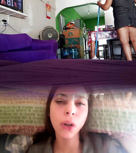 My chubby and pregnant wife cleaning