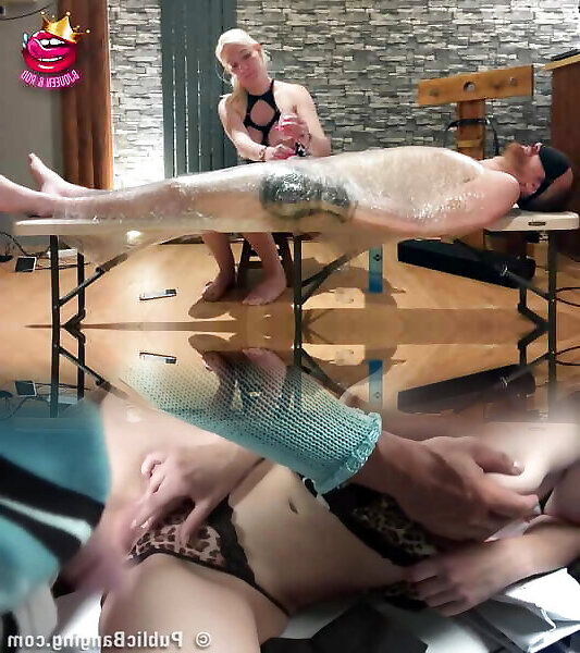 Cfnm female domination Brits masturbate nude guy’s fuckpole