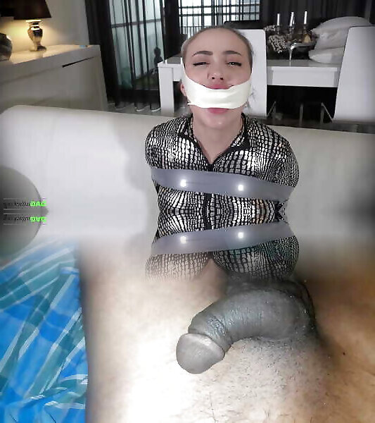 Bare restrain bondage – Trussed solo chubby girl cam ball-gagged Orgasm