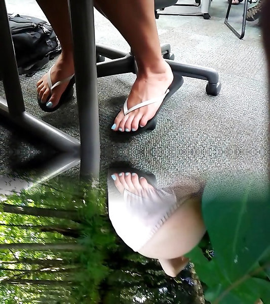 Candid nymph messy pink feet in flats pes sujos