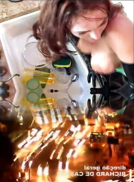 Latex housewife gets anal fucked on the kitchen floor