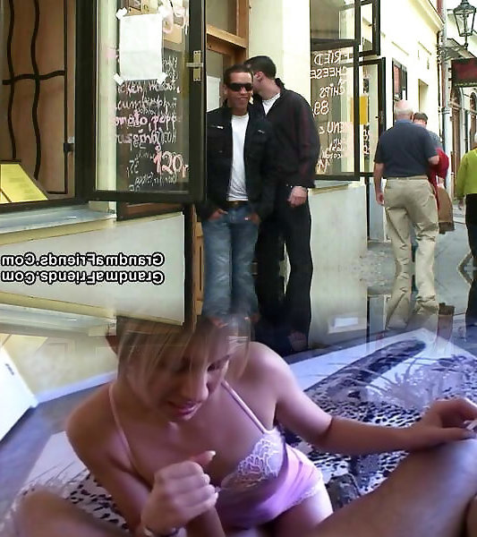 Euro grandmother sucks man rod on her knees